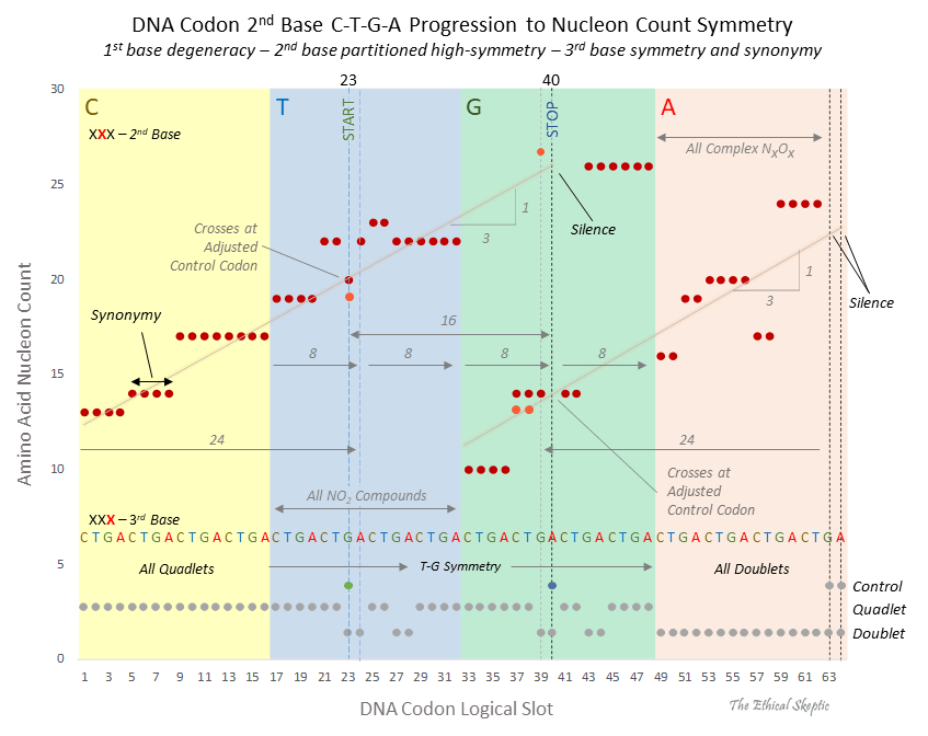 The CTGA progression in the second base doesn’t just organize by nucleon count – it also organizes by: