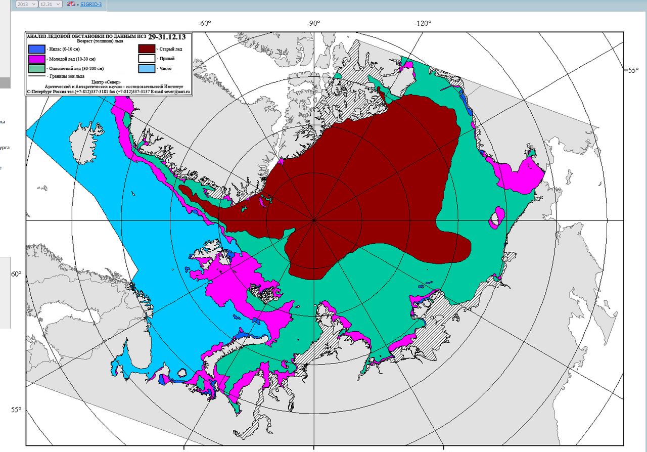 Here is one such organization: Federal Service on Hydrometeorology and Monitoring of the Environment and its main Arctic and Antarctica Scientific Research Institute in St. Petersburg which deals with precisely those issues describing conditions of Arctic. Because Russians are backward uncultured people they continue to rely on such funny things like space-based observation, advanced scientific methods and a gigantic fleet of icebreakers (and air assets) which monitor this environment 24/7. This institute, whose one of the major tasks is monitoring Arctic ice, publishes ice maps. And here is what is so fascinating about them. Here is 2013 Ice map:
