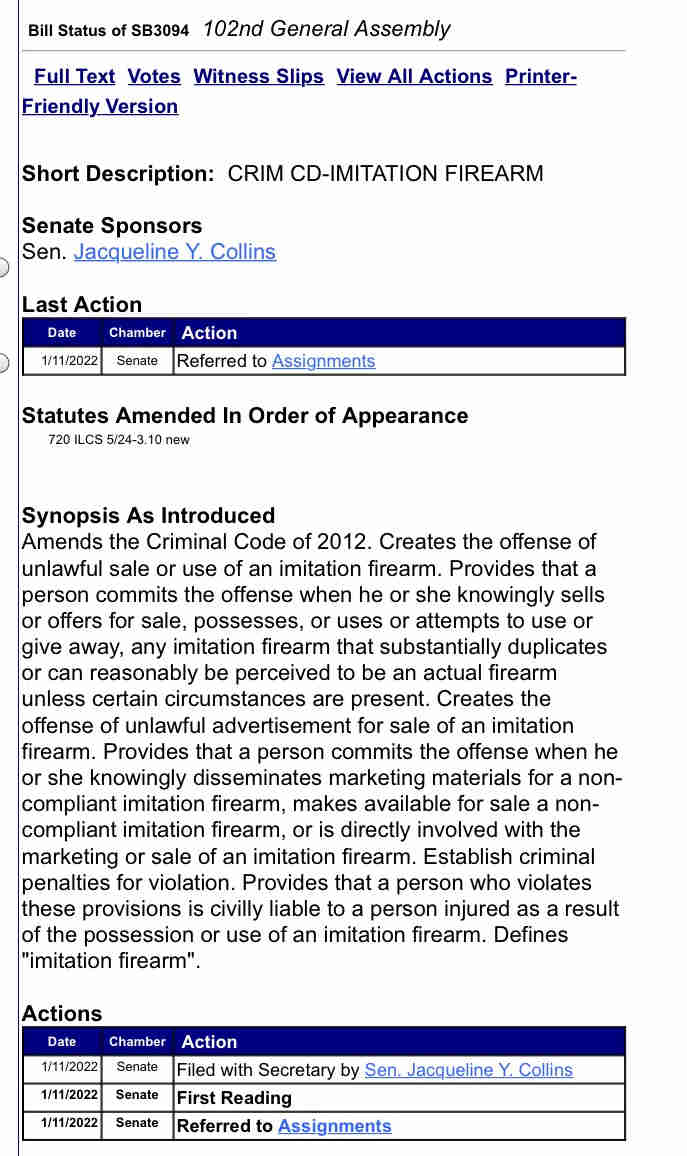 Illinois bill to criminalize possession of BB/Paintball/Airsoft/squirt guns